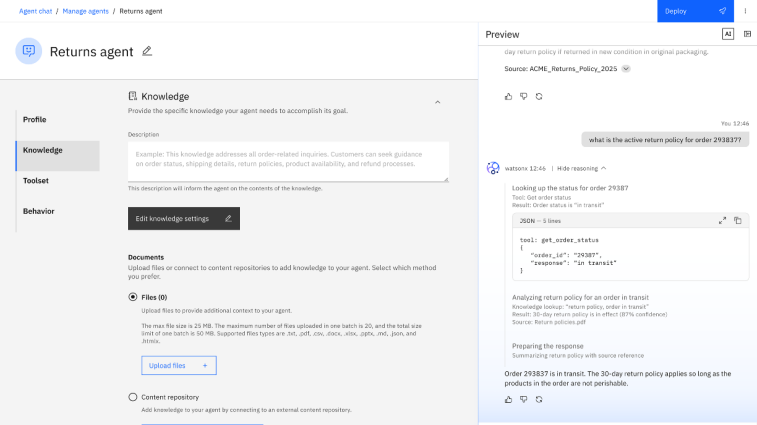 Build, test and deploy AI agents with ease. Bring together your company data, the right tools and clear behavioral guidelines to design reusable agents that scale across your business.