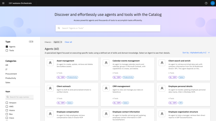 IBM® watsonx™ Orchestrate® puts AI to work, helping you build, deploy and manage powerful AI assistants and agents that automate workflows and processes with generative AI. Seamlessly integrate with your existing business systems. Connect to any AI model or automation tool. Enable collaboration between your AI assistants and agents in one unified experience.